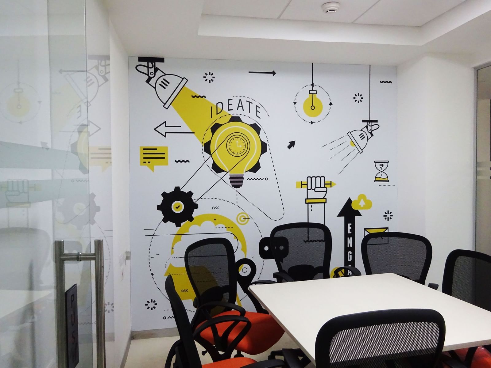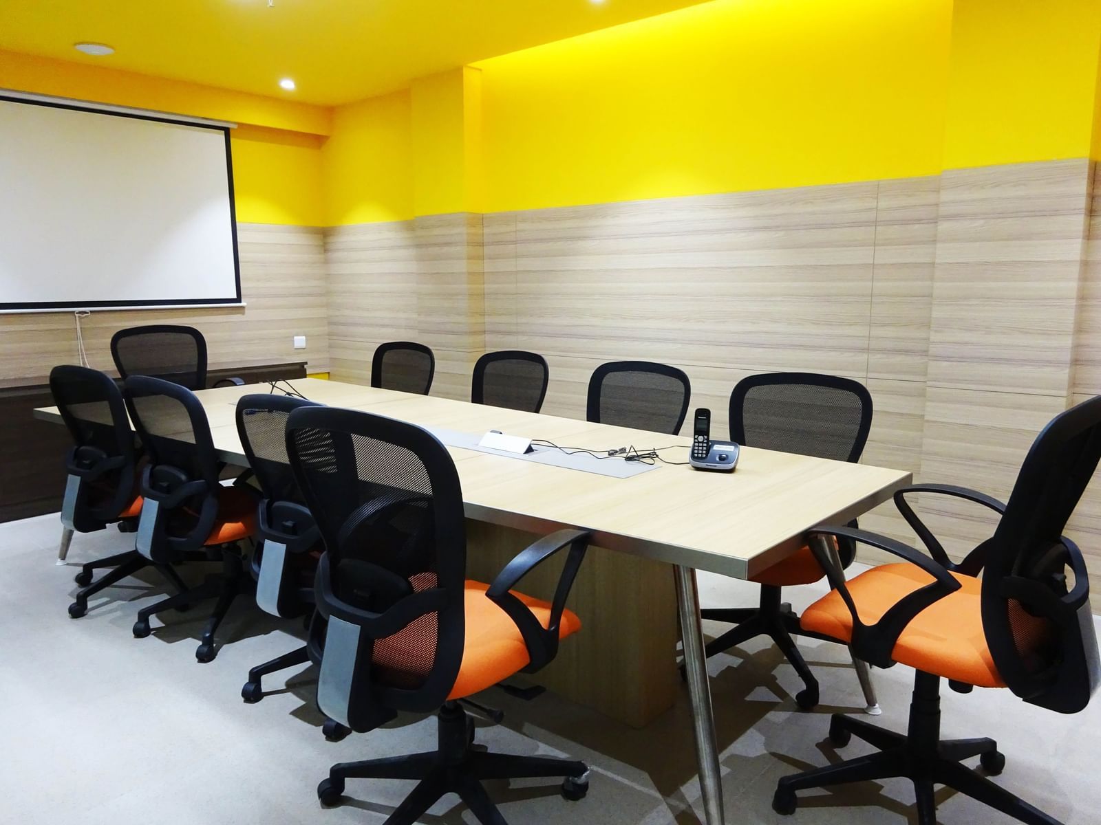 Let’s walk through this cool corridor and into the spacious conference room for powerpoints, revenue discussions, concept meetings, interesting conversations, and of course the occasional pizza and chaat from the Grand Chennai by GRT Hotels next door!